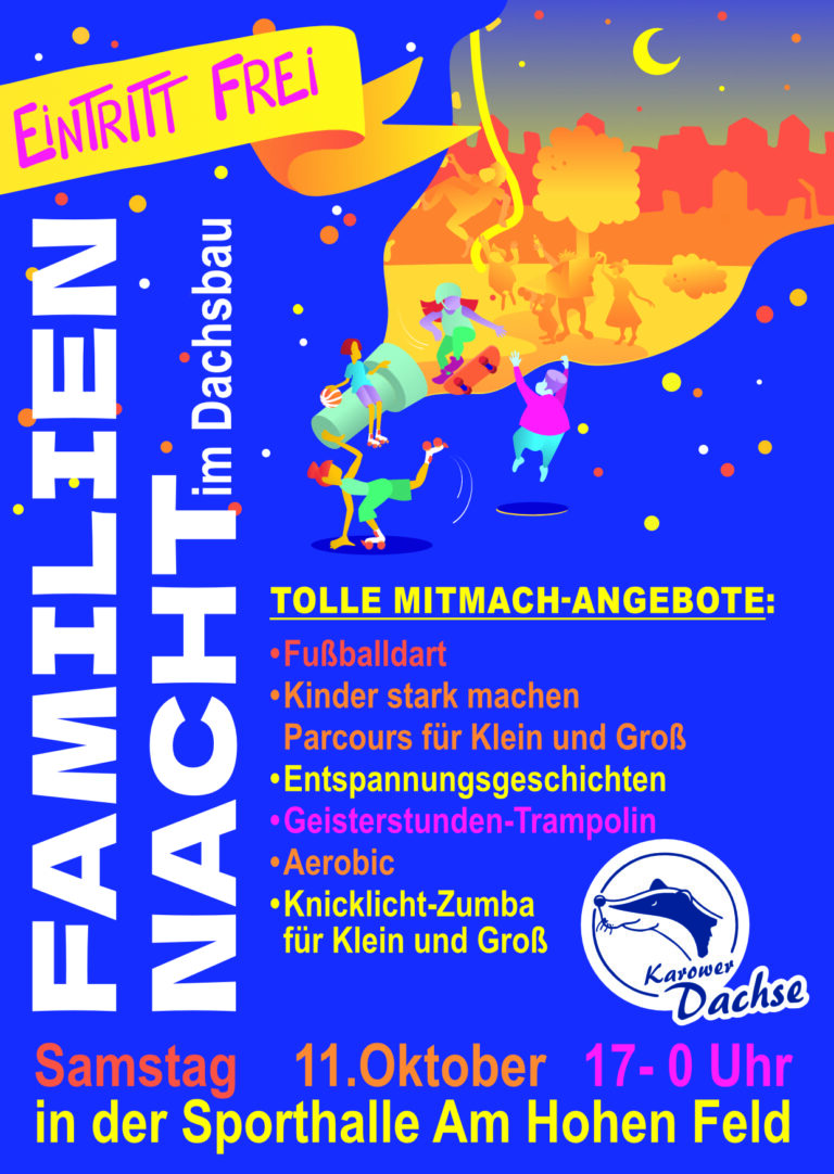 Wenn draußen der Herbstwind weht und der Spielplatz ungemütlich wird, öffnen sich im Dachsbau wieder die Türen für eines der beliebtesten Sportangebote der Karower Dachse: Der Familiensport ist zurück – von Oktober bis Ostern, jeden Sonntag in der Sporthalle der Grundschule Am Hohen Feld (Bedeweg 1, 13125 Berlin).