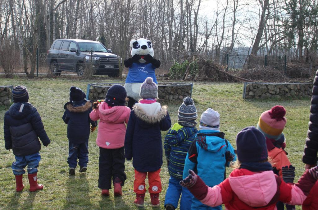 Im Rahmen der „Märzaktion Frühlingserwachen“ des Sporttreff Karower Dachse besucht das Maskottchen des Familien-Vereins Kindertagesstätten im Kiez für eine gemeinsame Sportstunde.