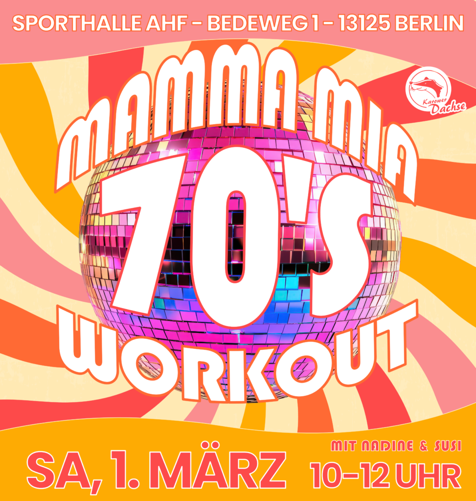 Fit ins Frühjahr! Das ist erneut das Motto der beiden Dachse-Trainerin Susi und Nadine. Wie im Vorjahr laden sie zu einem Workout-Special ein. Diesmal mit dem Motto: „Mamma-Mia – 70’s Workout“. Im fröhlichen Beat der ABBA-Hits wollen die beiden Trainerinnen auch diesmal Mitglieder und Interessierte ordentlich ins Schwitzen bringen.