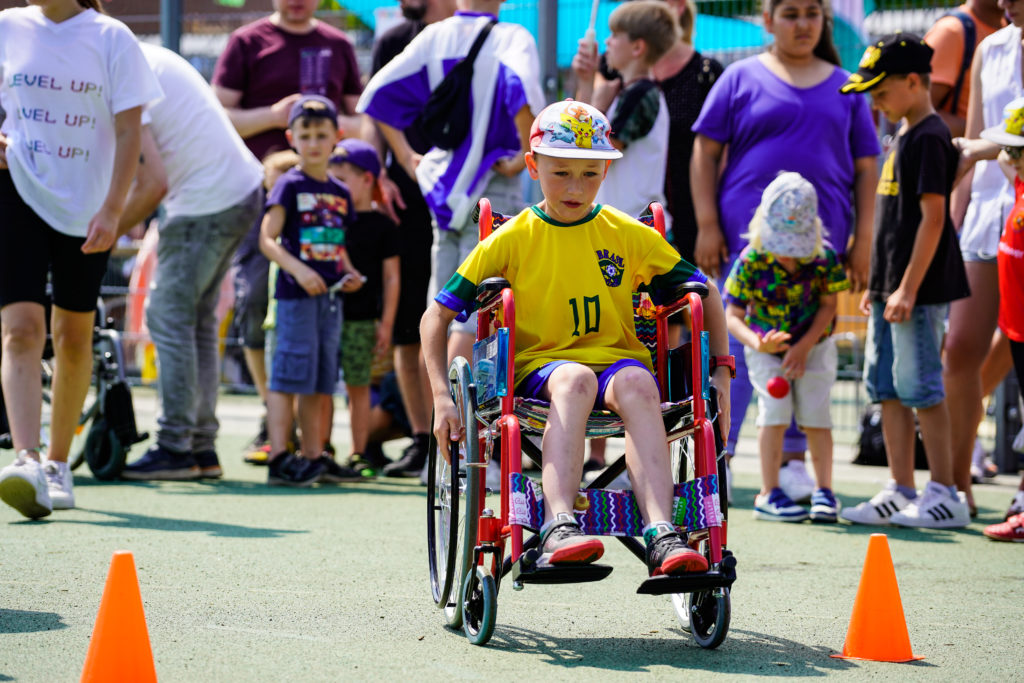 Neben der Laufstation des LSB gab es aber auch bewährte Dachse-Stationen aus dem Vorjahr wie den Streichholzweitwurf (Danke Ahmed & Micha), den Eltern-Kind-Parcours (Danke Rékà, Hanna & Caro), dem Floorball-Stand (Danke Daniel, Elric Thoren, Holger & Elias), der Workout-Station (Danke Nancy, Kristin & Nadine) und Fühlen & Lupfen (Danke Uwe, Christa & Petra). Wie im Vorjahr war auch der Berliner Fußball-Verband wieder mit einem Blindenfußball-Slalom dabei – Dickes Danke an Julian fürs Durchhalten ;-). Zudem unterstützte Special Olympics Berlin das Dachse-Sportfest an drei Stationen. Neben dem bekannten Rollstuhlpacours – mit neuen Elementen – hatte Andreas Gernandt mit dem inklusiven Fechten und anderen barrierefreien Sportangeboten jede Menge Abwechslung mitgebracht. Zudem gab die Station „Bewusste Ernährung“, die von Ernesto von Special Olympics gemeinsam mit den Dachse-Trainerinnen Eike & Sabine (Vielen Dank!) betreut wurde, einen neuen Aspekt auf das Sportfest. Nach Absolvierung aller zehn Stationen konnte die Stempelkarte dann beim Dachse-Vorstand um Kirsten & Nancy am Infostand abgegeben werden.Spannendes Turnier – Gastgeber im Finale