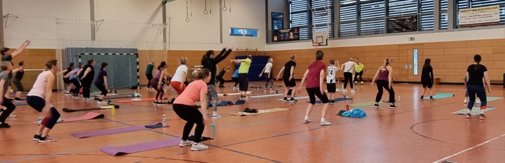Nach dem Zirkel ging es in eine längere Erholungspause mit Erfrischungsgetränken ehe die letzte, dritte Einheit auf die 44 Teilnehmer*innen wartete. Susi gab eine 30-minütige Yoga- und Pilateseinheit mit anschließendem Cool-Down. So pünktlich wie die Einheit startete, war sie dann auch um 12 Uhr beendet. „Alle waren immer noch gut gelaunt, aber auch ziemlich K.O. Wir sind begeistert und freuen uns sehr, dass so viele Teilnehmer unser Sportangebot angenommen haben und dabei waren“, zogen Nadine und Susi ein durchweg positives Fazit.